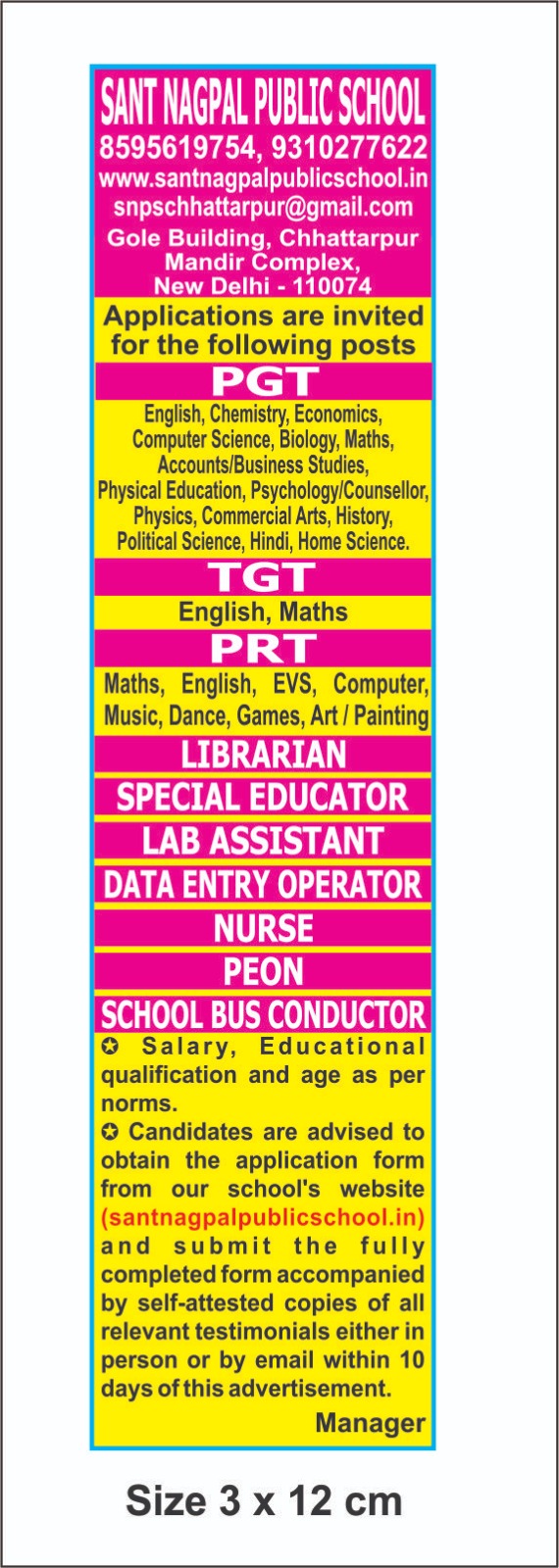 Candidated have to fill the application form and send it to snpschhattarpur@gmail.com
